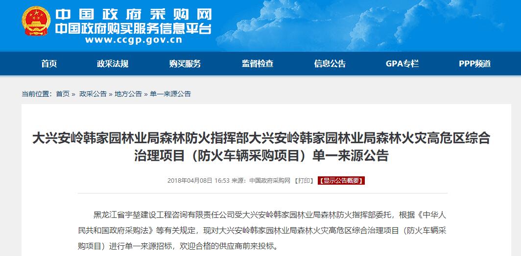 據(jù)林業(yè)局領(lǐng)導(dǎo)介紹,該批車輛到達(dá)林業(yè)局后下發(fā)至林業(yè)局防火辦,主要用于森林滅火人員物資輸送,后勤保障救援,防火器材運(yùn)輸?shù)戎饕ぷ鳎虼藢?duì)車輛的質(zhì)量要求極其嚴(yán)格,對(duì)我們公司提供的防火車輛給出高度評(píng)價(jià),此批車輛為韓家園林業(yè)局經(jīng)過層層篩選,反復(fù)招投標(biāo)后才確定的車型,公司接到中標(biāo)通知書時(shí)也是很激動(dòng),能接上這樣的森林防火設(shè)備運(yùn)輸車,也對(duì)我們的服務(wù),質(zhì)量提出更高的要求。該局領(lǐng)導(dǎo)介紹由于林區(qū)防火公路多為簡(jiǎn)易道路,對(duì)車輛通過性要求很高,我公司提供的四驅(qū)越野卡車能夠滿足他們的需求。下圖為招標(biāo)公示。