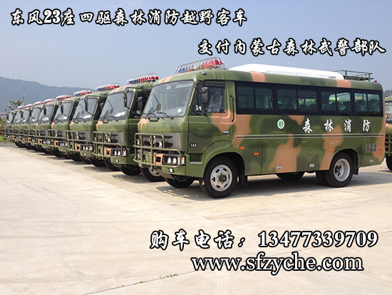 東風23座四驅森林消防專用運兵車型號為EQ6680ZTV,采用軍工東風EQ6650KZ5T 三類底盤,發動機型號:ISD160 50康明斯160馬力國五排放,變速箱為手動六檔變速箱,整車外形尺寸長寬高(6800X2320X2800,3010)mm 驅動形式:4×4,離合助力,方向助力,斷氣剎,鼓式自動,車橋為東風德納,輪胎為7.50R20鋼絲胎,外行李架,工具箱3個,前置防裝杠,粘接式推拉玻璃,鋁花紋地板,中檔座椅,,手動式外擺門,153駕駛室正副司機門,獨立柴油鍋爐暖風機帶四個出風口,窗簾,滅火器兩個,備胎一個。選裝頂置派恩大功率空調機組。