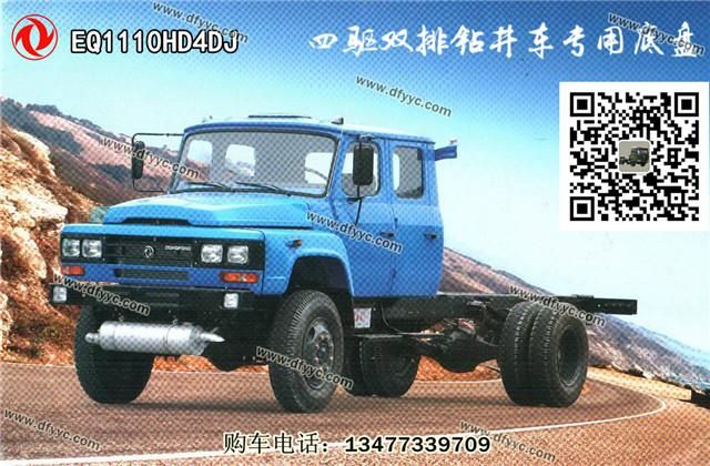 東風(fēng)尖頭四驅(qū)雙排越野鉆井車(chē)詳細(xì)配置:采用東風(fēng)EQ1110HD4DJ型原廠四驅(qū)越野底盤(pán),尖頭雙排座駕駛室,玉柴160馬力正宗國(guó)四發(fā)動(dòng)機(jī),五檔變速箱,3.5噸前驅(qū)動(dòng)橋,后十噸東風(fēng)德納車(chē)橋,232mm(6+5)雙大粱,輪胎為9.00R20鋼絲胎。