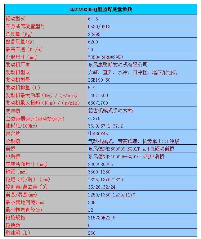 潤知星牌SCS5220XXYEQ型廂式運輸車簡介:六驅越野箱式應急保障車采用東風EQ2220GD5DJ型越野汽車底盤,東風D530寬體一排半駕駛室,帶空調,6*6驅動,康明斯190馬力發動機正宗國五,機械式六檔變速箱,315/80R22.5 越野輪胎,帶備胎,ABS,標準車廂尺寸:4900×2400×2200(mm)。