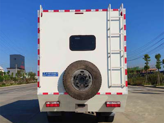 三、東風(fēng)四驅(qū)越野宿營車, 4驅(qū)越野宿營車用途:適用公安、特警、公安、邊防、衛(wèi)生、交通、礦山、地質(zhì)、軍隊等部門]長期野外作業(yè)、勘察、救援、搶險、救災(zāi)等宿營用,箱體空間利用大化。內(nèi)部配置:配備前儲物柜、后儲物柜、液晶電視機應(yīng)急燈、頂燈、頂置空調(diào)、床墊、被褥等。選裝配備8組豪華折疊臥鋪、未鋪上下梯、安全保險帶、電源插口等,細(xì)節(jié)精致。外置燃油加熱器、頂護欄、前爬梯、隱藏抽拉梯、專用房車門、專用玻璃滑窗、警示燈等。