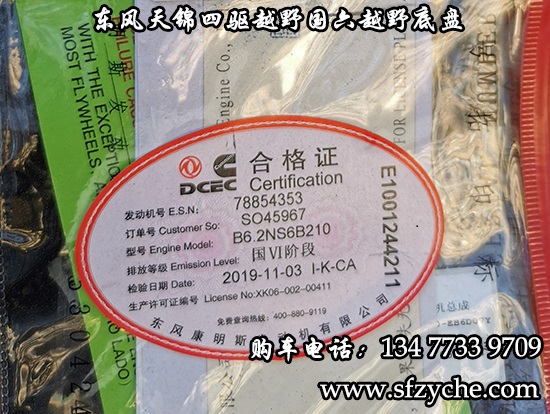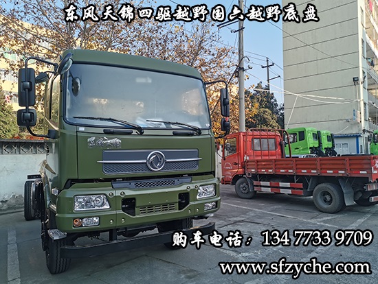 國六排放東風天錦四驅越野底盤正式下線了,東風天錦4*4驅動國六越野卡車底盤采用:東風天錦D530一排半駕駛室,4×4驅動,康明斯B6.2NS6B210國六發動機210馬力,韶齒六檔變速箱,東風商用車橋,前驅動橋3.8噸,后橋10噸,10.00R20輪胎,軸距4500mm/4700mm,電動玻璃,方向助力,斷氣剎,ABS,大燈自動調節,自動調整臂,選裝原廠空調。