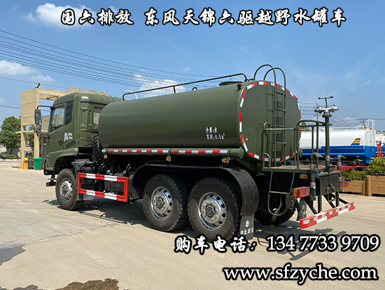 國六排放潤知星牌SCS5165GPSDFV6型六驅越野綠化噴灑車_東風天錦六驅森林消防水罐車_六驅園林綠化灑水車主要用于城鄉園林綠化灑水,噴藥等;主要裝置為水罐及泵.隨底盤選裝駕駛室.罐體有效容積8.7立方米.罐體外形尺寸(長×長軸×短軸)(mm) 4200×2350×1300.側、后防護材料為Q235B,側、后防護與車架焊接連接.后部防護裝置斷面尺寸(寬×高)50×120(mm),后部防護離地高度:460mm.ABS型號/生產廠家:3631010-C2000/東科克諾爾商用車制動系統(十堰)有限公司。東風天錦六驅越野綠化灑水車上裝配置:罐體采用優質碳鋼QB235板材,板材厚度4mm,罐體容積8.7立方,安裝取力器,60-90威龍大功率水泵可泵進泵出,后置工作平臺帶水炮射程25米,消防栓接口左右各一個,選裝駕駛室頂部安裝長條警燈帶喊話器,全車顏色軍綠,兩側噴涂白色森林消防字樣等。