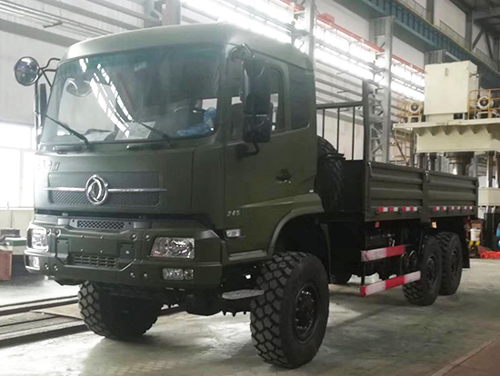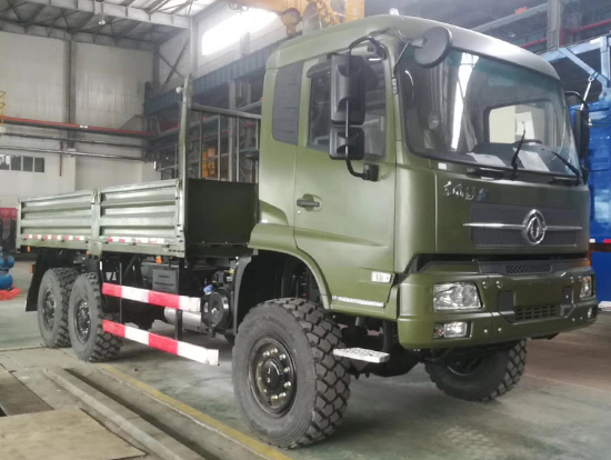 DFV2223GP6DJ型國六排放高端東風天錦六驅越野車簡介:國六東風天錦六驅越野卡車,采用高配大江車橋帶輪邊減速及差速鎖速比5.921,株齒ZQC1200分動箱,法士特大八擋變速箱,整車底盤按沙豹沙漠車標準設計制造更加結實耐用,車架尺寸達到5.3米,載重量可達到15噸,采用三角高端越野輪胎365/80R20。產品特點及用途:純正越野車,輪減車橋,帶輪、軸間差速鎖,選裝全時六驅帶軸間差速鎖,適合道路惡劣的山區、林區、礦山、淺表沙地等地域使用。