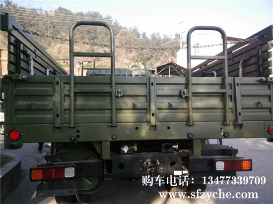 東風國五天錦EQ1120GA2型運兵車,4×2驅動,D530平頭一排半平頂駕駛室,,軸距3800mm,康明斯ISD245 50國五排放245馬力,6.7升發動機,八擋變速箱,帶電加熱(預熱塞)冷起動裝置,全鋼全鋼 主油箱160L,80L副油箱,Φ395mm推式膜片彈簧離合器,東風 4.5噸前橋,9噸后橋,主減速比5.286,車架斷面250×80×(7+4)mm,鋼板彈簧片數7/9+6,9.00R20鋼絲胎,電動玻璃升降器,中控門鎖,通道式儀表板,帶空調,車廂內部尺寸為4950x22325x600mm鐵木混合結構,邊板帶坐凳,板材采用國標鋼材,邊板1.2mm,底板為3mm的花紋鋼板,車廂底橫梁用槽鋼加固,車廂縱副梁全槽鋼結構,能滿足客戶運輸重型貨物,適應部隊野外使用及冰雪路面行駛要求。全面繼承東風40多年軍車越野車制造經驗,動力總成匹配合理,生產技術成熟穩定,整車車輛全面通過軍檢。