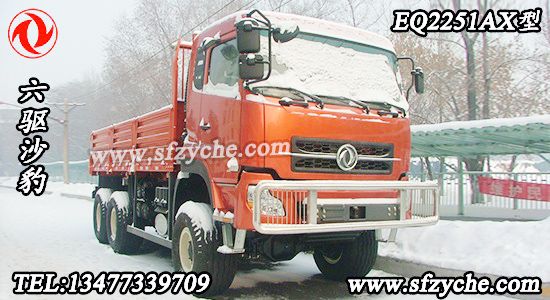 東風(fēng)牌EQ2251AX型沙漠越野車配置:采用東風(fēng)新款D310平頂單臥駕駛室,發(fā)動(dòng)機(jī):康明斯375馬力國四發(fā)動(dòng)機(jī) 直列增壓中冷六缸水冷柴油機(jī) ISLe375 40;北方奔馳同步器型9擋箱 9T-160 Φ430mm,膜片彈簧拉式離合器,7T前橋,10T 重慶大江雙級(jí)減速雙后橋 14.00-20輪胎 (選裝20-20 沙漠胎)軸距3800+1400 鋼板彈簧片數(shù)9/10,油箱350L,貨箱尺寸:5720×2294×800mm,整車外形尺寸:8470×2500,2700×3520,動(dòng)力轉(zhuǎn)向。如需了解更多東風(fēng)六驅(qū)沙漠車圖片,東風(fēng)六驅(qū)沙漠車價(jià)格,東風(fēng)六驅(qū)沙漠車參數(shù),請(qǐng)立即撥打銷售熱線:13477339709 李經(jīng)理 0722-7053060 業(yè)務(wù)QQ:530233927,東風(fēng)越野卡車網(wǎng)址:m.w484.com