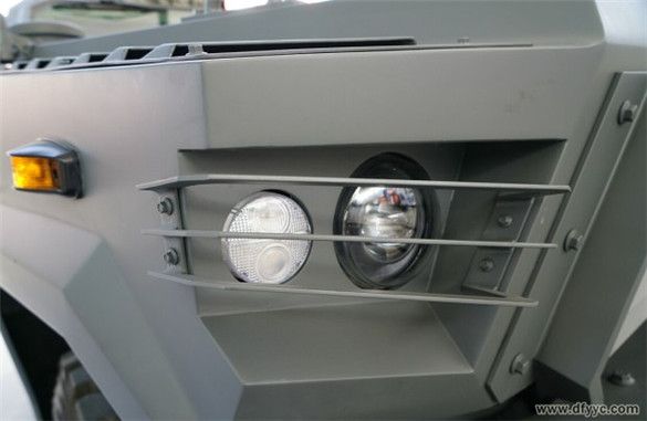 東風四驅防雷反恐戰車的前組合燈分為帶透鏡的近光燈、雙角度照射遠光燈,轉向燈位于翼子板兩側。近光燈與遠光燈被3幅面橫置格柵保護。