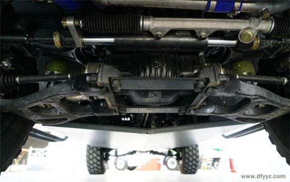 東風四驅裝甲防雷反恐戰車采用實時四驅系統,包括前后差速器以及分動器和控制系統全部國產化。帶有自動調節輪胎壓力的系統,具備5萬公里行駛無故障能力。為了提升東風四驅裝甲防雷反恐戰車通過性,加裝了中央差速鎖。