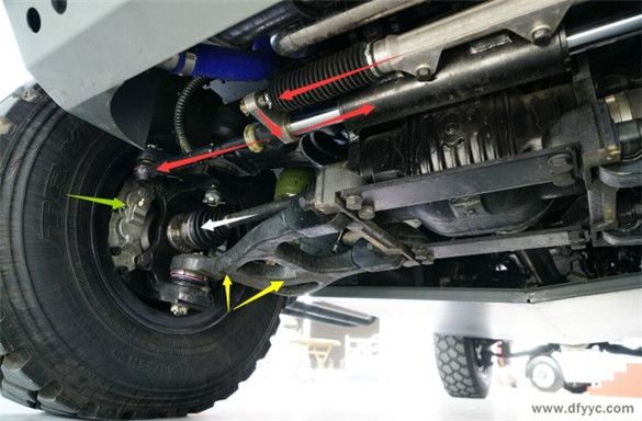 藍色箭頭:左前轉向拉桿至左前轉向節