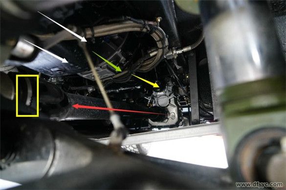 綠色箭頭2:指示出可以調節車身高度的右后油壓減震器