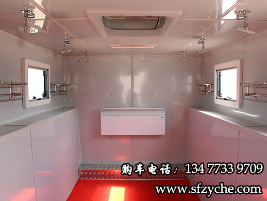 1、車上更衣,組織洗澡快捷方便。該淋浴車將淋浴室、更衣室、設備室全部設計在車上,每到一地組織洗澡,準備時間短,非常快捷方便,機動能力更強。