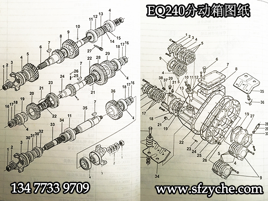 東風(fēng)六驅(qū)軍車EQ240主要分動箱配件有:主動軸、高檔主動齒輪、后橋驅(qū)動軸、高檔從動齒輪帶小齒、低檔從動齒輪帶小齒、中間軸中后橋驅(qū)動齒輪、中橋驅(qū)動軸齒輪、中橋驅(qū)動軸、前橋驅(qū)動軸嚙合套、中間軸、前橋驅(qū)動軸、半圓鍵、滑動齒套限位彈簧、換擋齒套限位鋼球、高低擋滑動齒套、7208軸承、主動軸軸承7308、7309軸承、7608軸承、9249/54軸承帶隔套、分動箱油封、分動箱叉形凸緣總成、分動箱外殼加蓋總成、前加力總成、前橋驅(qū)動軸外殼等。