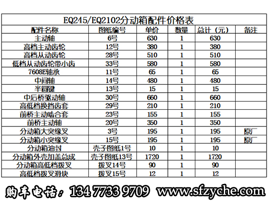 東風軍車EQ245/EQ2100E/EQ2100E6D六驅軍車分動箱配件報價表