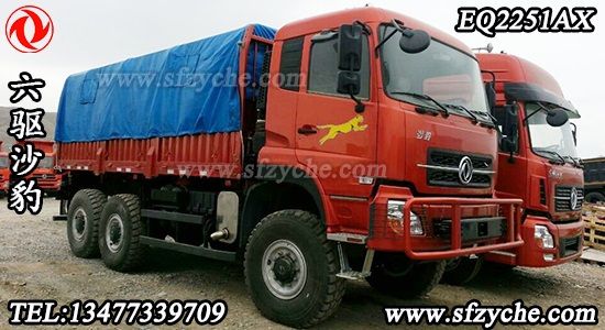 東風牌EQ2251AX型沙漠越野車配置:采用東風新款D310平頂單臥駕駛室,發動機:康明斯375馬力國四發動機 直列增壓中冷六缸水冷柴油機 ISLe375 40;北方奔馳同步器型9擋箱 9T-160 Φ430mm,膜片彈簧拉式離合器,7T前橋,10T 重慶大江雙級減速雙后橋 14.00-20輪胎 (選裝20-20 沙漠胎)軸距3800+1400 鋼板彈簧片數9/10,油箱350L,貨箱尺寸:5720×2294×800mm,整車外形尺寸:8470×2500,2700×3520,動力轉向。如需了解更多東風六驅沙漠車圖片,東風六驅沙漠車價格,東風六驅沙漠車參數,請立即撥打銷售熱線:13477339709 李經理 0722-7053060 業務QQ:530233927,東風越野卡車網址:m.w484.com