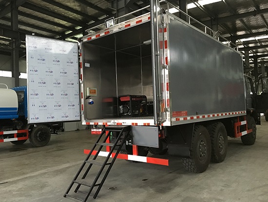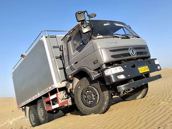 相關車型東風六驅國五越野廂式車簡介:采用東風原廠六驅國五越野底盤EQ2220GD5DJ型,駕駛室為老款153,新款D913兩種可以選擇,康機190馬力帶增壓,機械式六檔變速箱,3.5噸軍檢分動箱,4.5噸雙聯式軍用驅動前橋,5噸軍用貫通式雙后橋,方向助力,離合助力,前橋介入高低檔均采用電控式,315/80R22.5越野輪胎,軸距3500+1250mm,ABS,隨車工具及備胎各一套。