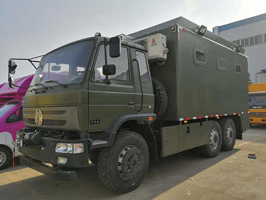 相關車型東風國五六驅越野自行式炊事車_東風軍用六驅炊事車_六驅野戰(zhàn)自行式餐廚車為部隊提供一種機動、高效的專用現(xiàn)場飲食保障裝備,滿足部隊平時及野外值勤時的主副食的飲食保障工作,并解決部隊行進中不停車做飯菜的需要及供應飲用水的需求。六驅自行炊事車功能簡介:該裝備主要編配于部隊,為部隊官兵野外作業(yè)時提供良好的飲食保障:具有制作食品、保溫食品和儲存食品的空間與功能、并具有提供開水和餐具消毒的功能。