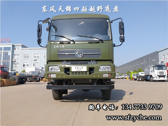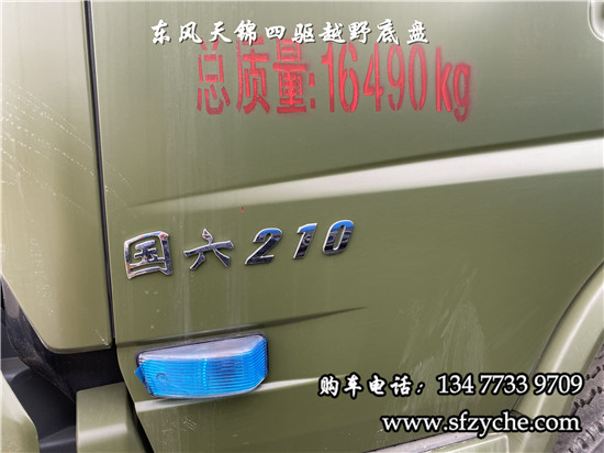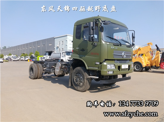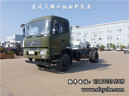相關車型國六排放天錦(4×4)越野底盤,采用DFV2163GP6DJ型國六排放東風天錦四驅越野底盤,東風天錦D530一排半駕駛室,4×4驅動,康明斯B6.2NS6B210國六發(fā)動機210馬力,最大扭矩:850N.m/1100-1700rpm,排量6.2L、韶齒手動六檔變速箱,東風德納車橋,前驅動橋4.5噸,后橋10噸,10.00R20輪胎,軸距4500mm/4700mm,大梁280mm,電動玻璃,方向助力,斷氣剎,ABS,大燈自動調節(jié),自動調整臂,選裝原廠空調。